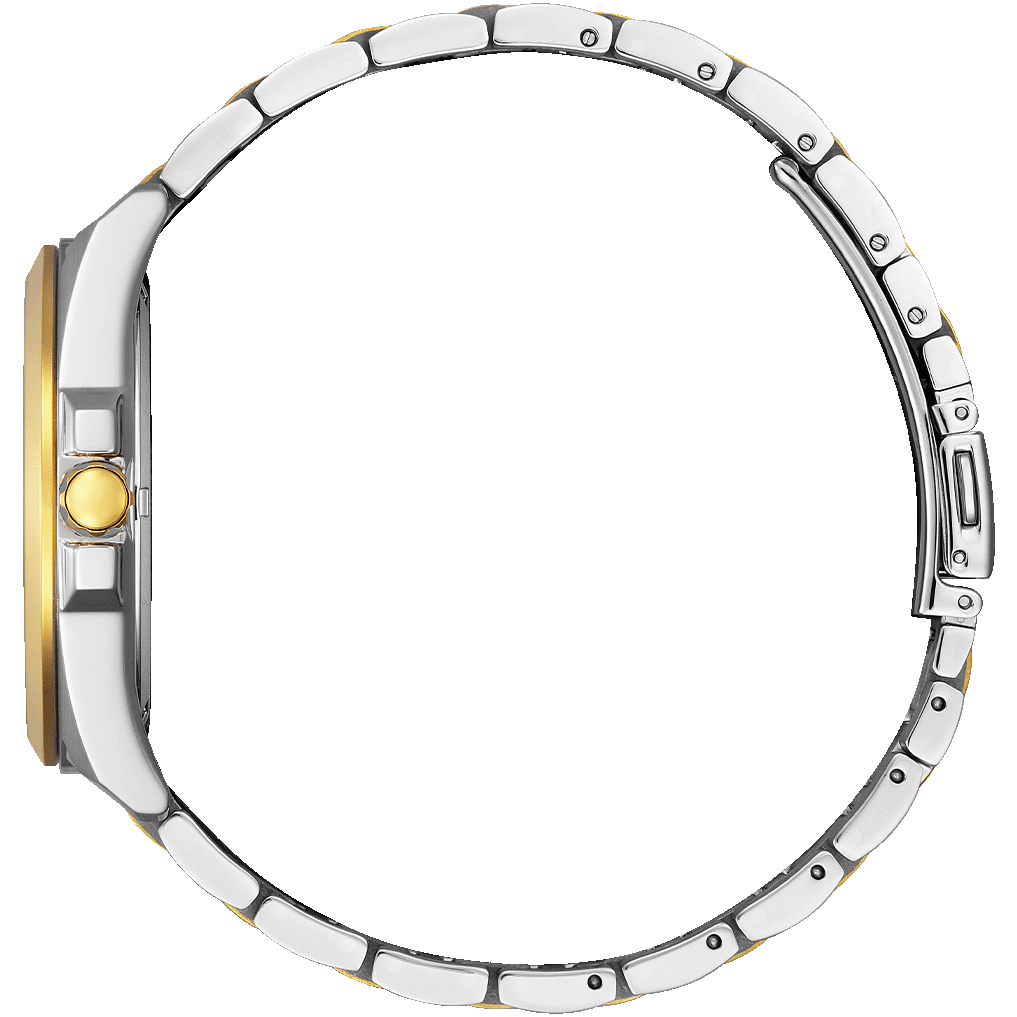 Citizen’s new Sport Luxury Chrono collection combines a desire for luxury watches with a need for modern technology into a single, innovative watch. This two-tone stainless steel bracelet is paired with a two-tone stainless steel case and a silver-tone three-hand dial with a subtle pattern in the center for a unique and subtle design. It also uses Citizen’s Eco-Drive technology, so it is sustainably powered by light and will never need a battery replacement. For everyone looking to go from the boardroom to the beach and beyond, this men’s watch will never be out of place.