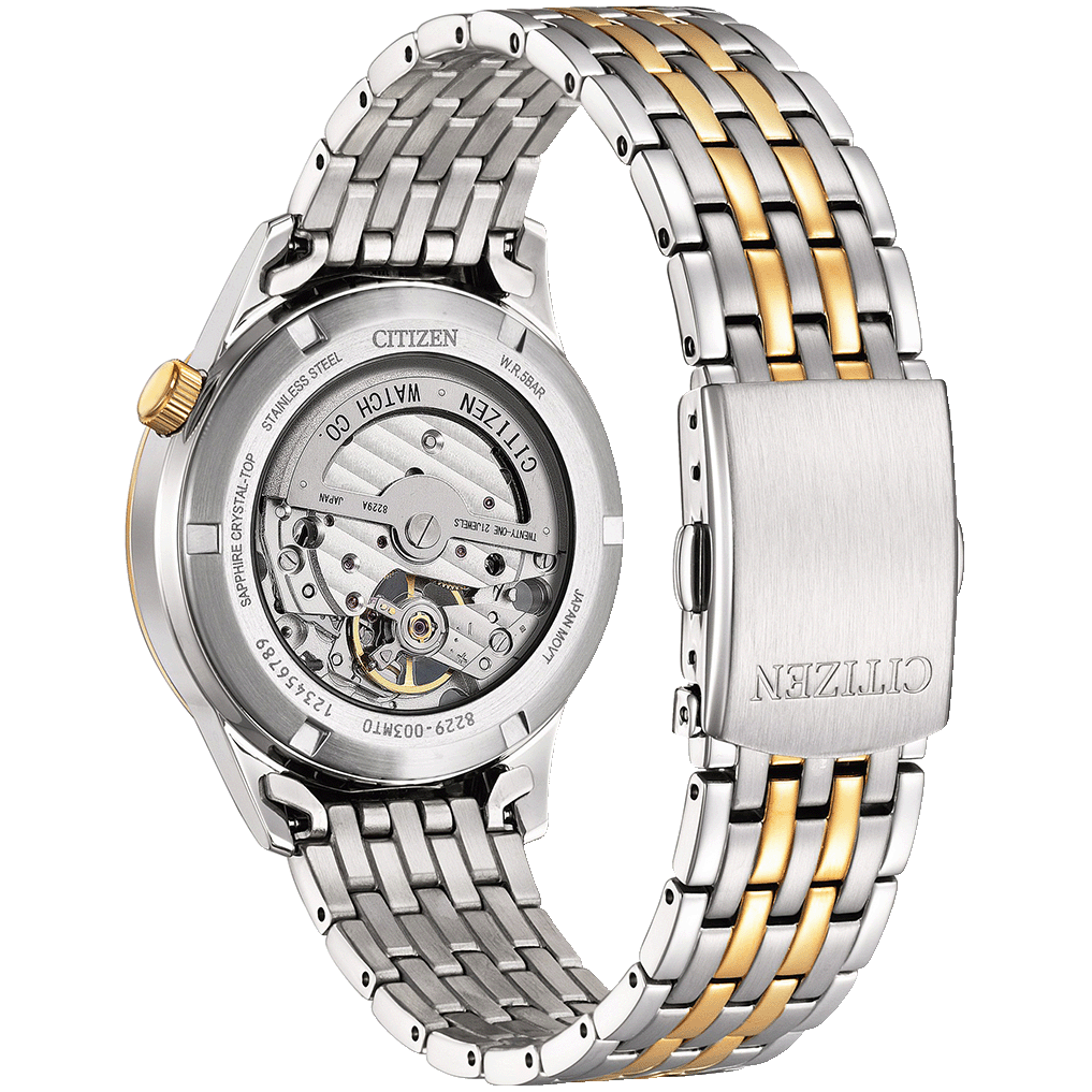 The Citizen NH9134-83X is a refined automatic timepiece that exudes elegance and precision. Encased in stainless steel with a 40mm diameter and 10.7mm thickness, it features a striking green open-heart dial with Roman numeral markers, offering a glimpse into the Caliber 8229-A21 automatic movement with a 40-hour power reserve. The watch is protected by sapphire crystal and boasts a see-through case back, allowing an intricate view of its mechanics. A fold-over clasp with push-button closure ensures a secure fit, while its 5-bar (50m) water resistance makes it suitable for everyday wear. Combining timeless design with modern craftsmanship, the NH9134-83X is a perfect choice for watch enthusiasts.